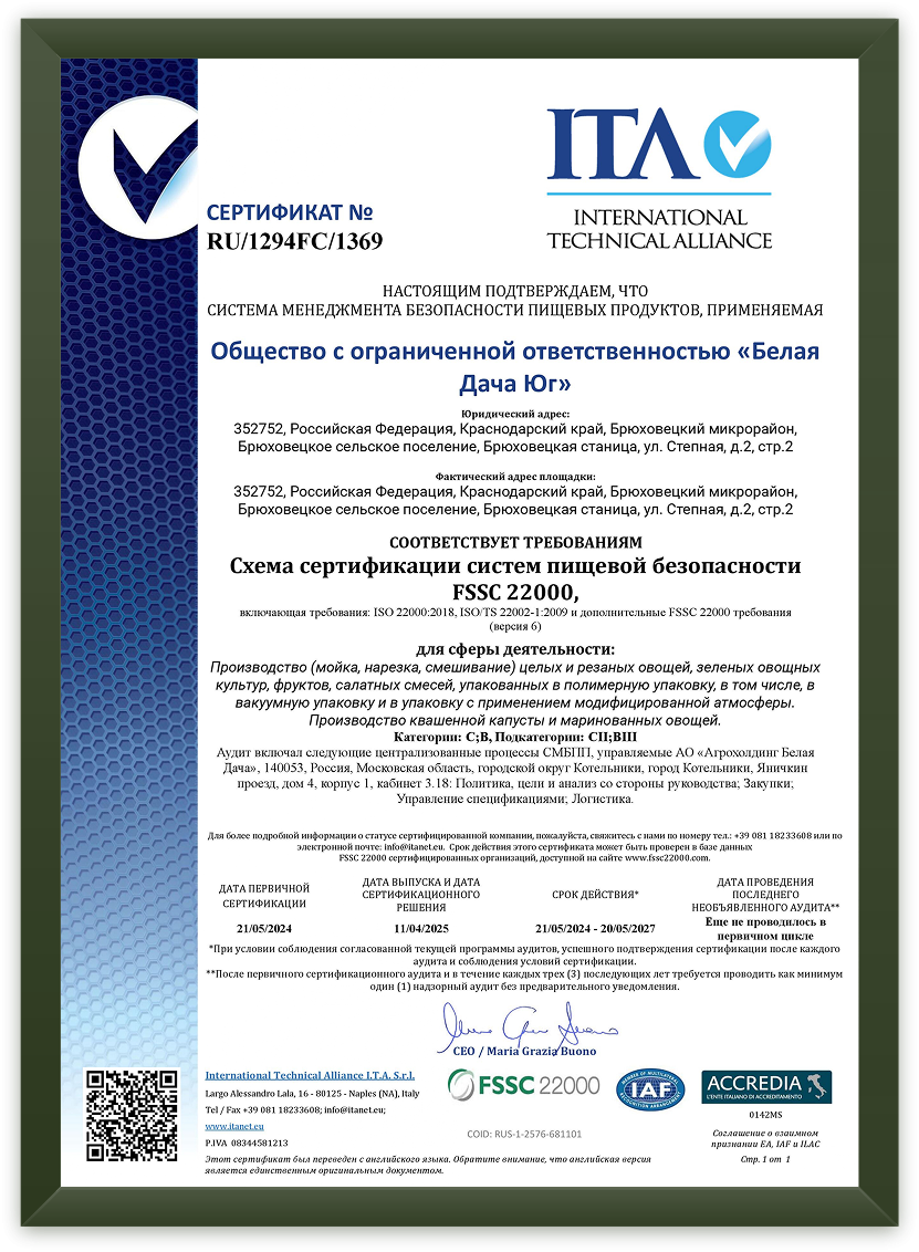 В любое время года Белая Дача работает с отборными салатными и овощными культурами — свежими, сочными и полезными.