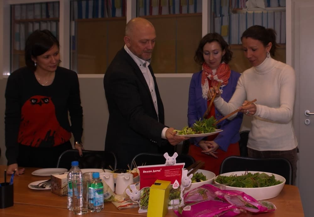 В ходе встречи г-жа Руане посетила завод компании «Белая Дача Трейдинг», теплицы компании «Белая Дача Цветы» и Конно-спортивный клуб Белая Дача. Во время визита она познакомилась с особенностями производства готовой салатной продукции и смогла на личном опыте убедиться в высочайших стандартах качества и пищевой безопасности салатов Белая Дача.