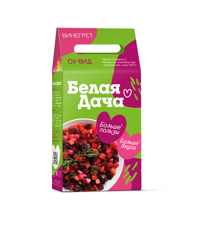 Микс из нарезанных овощей, приготовленных по технологии Sous-vide.Удобный вариант для приготовления винегрета по классическому рецепту — с зелёным горошком и хрустящими солёными огурцами.